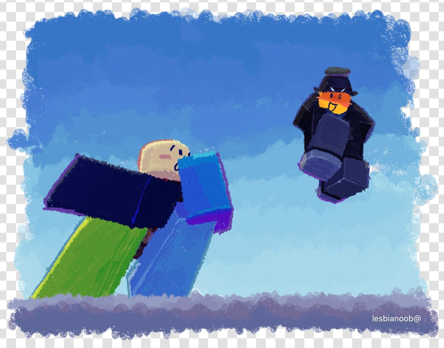 • Please don't use, steal, or repost any of my art, ocs, or other content, without permission (or credit, for example if you're showing me in a vid).• Pfps are fine just credit me if you want (definitely credit me if you're using an OC of mine)• Fanart is totally fine. I'll add your art to the fanart section.• Don't contact me about selling/trading my Roblox games/items/account.• None of my characters are for sale or adoptable. I don't do requests but you can always suggest.• Don't use me/my stuff in AI content without permission. Never interested in NFT, or crypto.